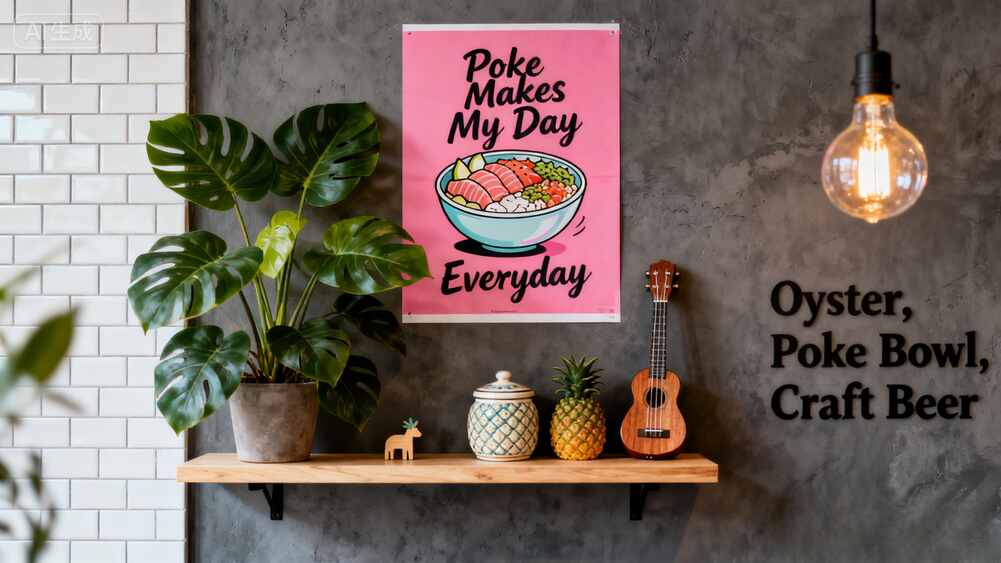 ?? 這家Poke店軟裝設(shè)計(jì)太會(huì)了!灰墻木架+治愈粉海報(bào),進(jìn)去就不想走!