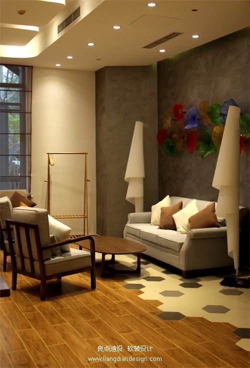 在軟裝設計中將山水的大自然靈性融入空間中,使其翔動一種源自自然的藝術氛圍,山水、竹子、流沙、雨花石、綠植及原木等這些元素運用其中,使整個空間一步一景,一份寧靜的北歐風情。裝飾材料主要有木材、石材、玻璃和鐵藝等,都無一例外地保留這些材質的原始質感。它所呈現(xiàn)出來的是非常接近自然的原生態(tài)的美感,沒有一點多余的裝飾,一切材質都袒露出原有的肌理和色澤。