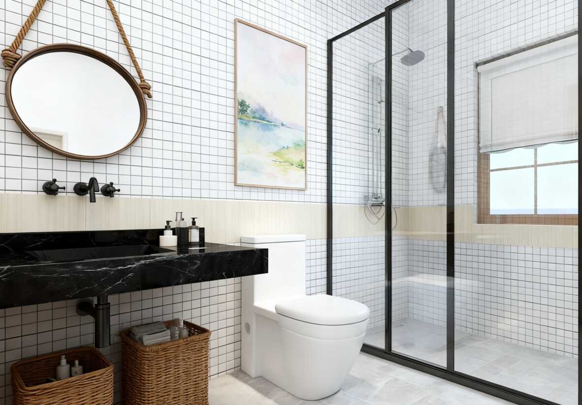 被問爆的民宿浴室軟裝設計!黑白格 + 藤編筐 + 藝術(shù)畫,洗澡都像在逛藝術(shù)展
