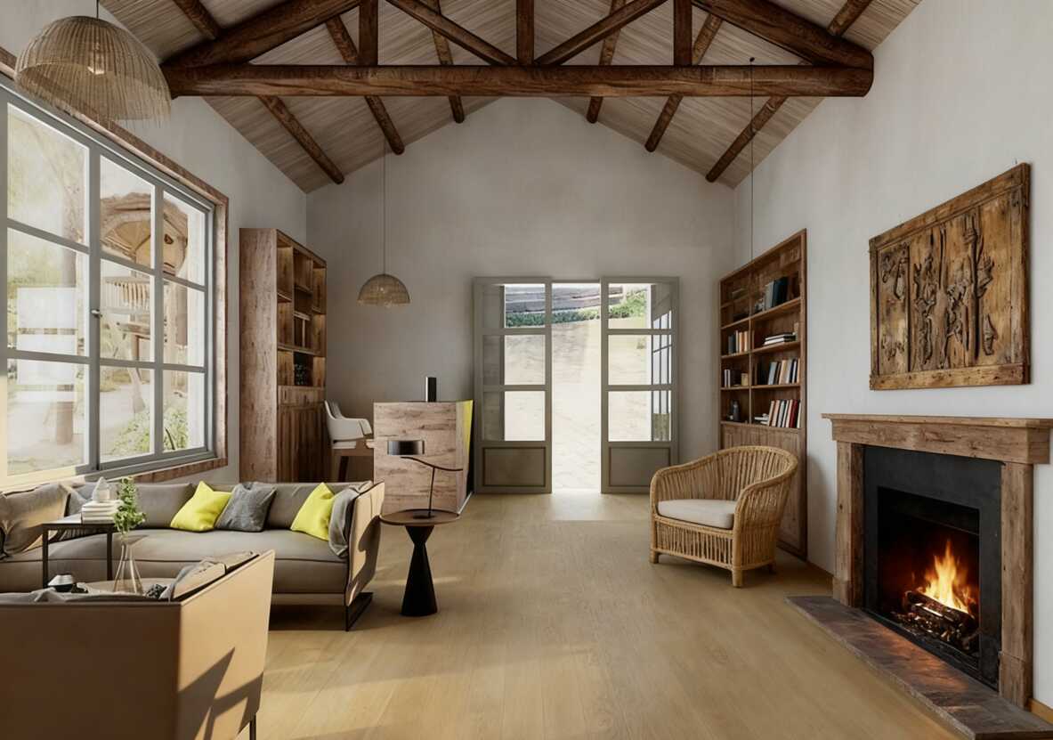 鄉(xiāng)村侘寂風(fēng)民宿軟裝設(shè)計(jì)絕了!壁爐 + 原木 + 藤編,住進(jìn)這里就像闖進(jìn)歐洲田園電影