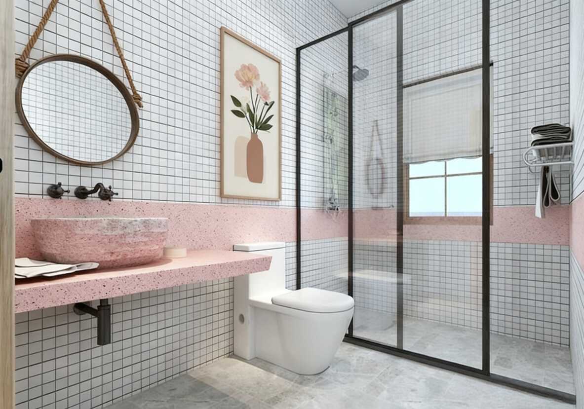 少女心暴擊!這家民宿浴室軟裝設(shè)計(jì)太會(huì)了,粉白格紋 + 復(fù)古細(xì)節(jié),洗澡都像在打卡