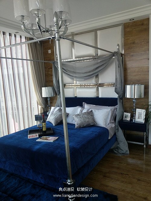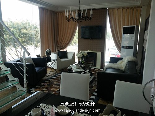 香城壹號LOFT本身是一個挑高空間,樓上樓下雙層生活空間,大的落地窗納入明媚陽光,樓下起居室與餐廳連接一體,舒適自然,給居住者提供方便舒適的使用環(huán)境,在這樣的空間中我們運用大膽時尚的設計風格,餐廳區(qū)域是挑高的空間,窗簾形式也采用簡潔的彩虹卷簾百葉的形式。抽象化的吊燈在空間給人帶來隨意自然的氛圍。現(xiàn)代感皮面沙發(fā)和漸變拼花皮地毯都給人帶來時尚的氣息,二樓樓梯間的照片墻有歡迎客人與展示主人愛好與生活方式的作用,一個小桌配一個復古的皮沙發(fā),不論是暖暖的下午還是深夜都是一個品茶看書的好地方,貴族藍的床品和化妝臺搭配煙灰色紗幔,為臥室營造出典雅浪漫的氣息,LOFT風格創(chuàng)意裝飾就這樣被打造出來。