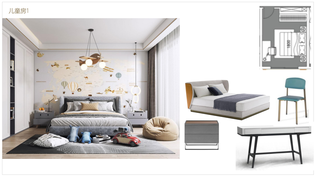 其中一間 南次臥 當做兒童房使用,床頭作硬包,整體軟裝可以以顏色來區(qū)分小主人的性別或者以長遠來看,可以用中性色為基調(diào),以簡約和性價比來裝飾整個空間,房間的采光和照明比較重要,并且單獨的學習區(qū)域需要寬敞一些,還需要增加一些書本的收納。