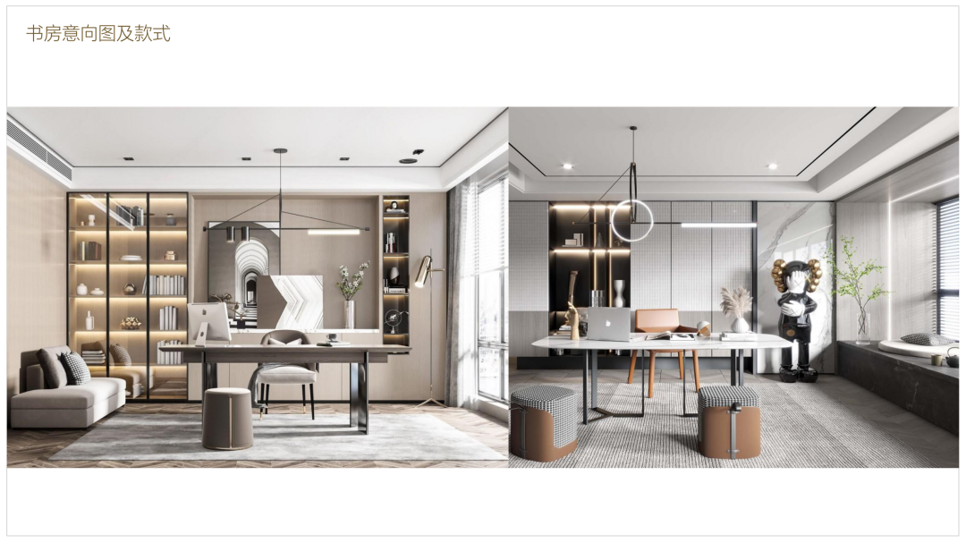 北面的小房間當作獨立 書房使用,形式是多種多樣的,不同的風格有不同的設(shè)計手法以及材質(zhì)的運用都是跟風格息息相關(guān)的,需要注意的是頂面跟側(cè)面,他跟墻體的一些收口的問題,材料肌理的選擇,也應該跟燈具、窗簾這些軟裝方面的東西整體統(tǒng)一起來去考慮。