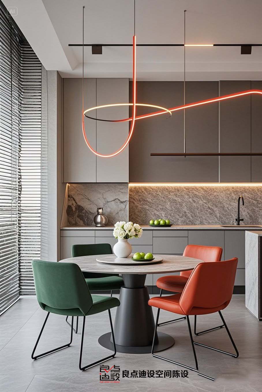 這套軟裝設(shè)計(jì)就組合拳誰(shuí)看誰(shuí)迷糊!灰橙綠配絕了,小廚房秒變雜志封面!??